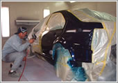 外からの埃を遮断してクリ-ンな環境の中で塗装作業を行います。